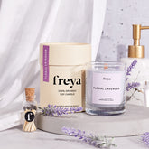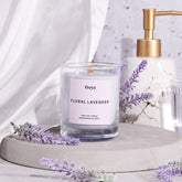 Transport yourself to a field of lavenders with our Floral Lavender Glass Jar Candle. Smell in the warm, sweet, and calming fragrance that has captivated people for eons.