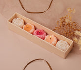 Introducing - a charming gift box featuring five beautifully crafted flower candles, each infused with the soothing and sweet aroma of Vanilla. Delicately designed to resemble blooming flowers, these candles create a welcoming ambiance, perfect for relaxation and celebration.