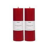 Set of 2 Fluted Pillar Candles - Royal Rose (Red) - Short